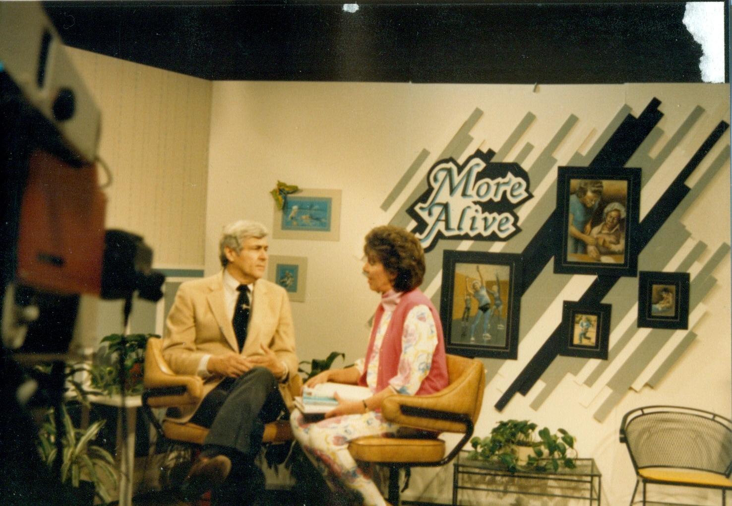 | Jo Murphy interviews a guest on the More Alive show in 1986. |